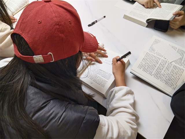 拿到书籍后,大家都全神贯注地投入到阅读当中去。午后的阳光温暖而惬意,懒洋洋的光线撒在书页上,闪着金色的光芒,仿佛为知识的海洋注入了一种温暖的生命力。同学们聚精会神地翻阅着书本,时而低头默读,时而抬头深思,手中的书页轻轻翻动,完全沉浸在自己的小小世界中。