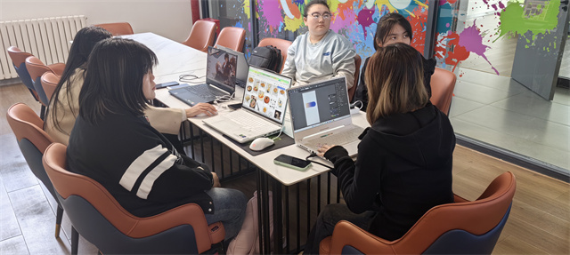 在郑博部长简短的开场白后活动正式开始。孙艳蓉部长为大家简单介绍了设计的重要性以及内涵意义。各位干事分享了自己近期对PS和AI的熟悉程度和操作上稍差一点的地方,再由部长们指导精进。