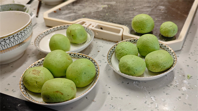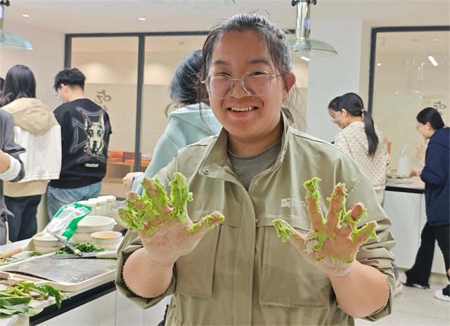在活动过程中,节气大使——赵晟带领“节气学员”从揉捻面团开始,指导同学萃取色素,参加者依据自身喜好选择合适的馅料进行填充,传统的圆润造型早已无法满足大家的制作兴趣,千奇百怪的形状层出不穷,可能这才是创新与传统的结合,现代与古老的传承。