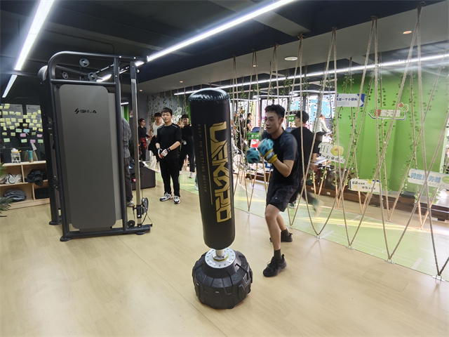毣谷书院“+U健身中心”带着上新的拳击器械邀请每位“热辣人”前来体验!电影中同款梨球、立式沙袋、拳击墙靶……来调动全身每一处肌肉,让心肺能力立竿见影,塑造结实而有力的肌肉线条。完全没接触过拳击的小白选手也可以放心大胆去尝试,戴上拳套、感受挥拳、躲避、出击、防守的实战体验,无需预约、即刻发力,向着更强大的自己“拳”力出击!