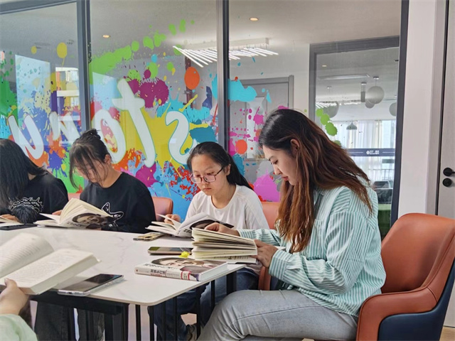 伴随着温柔的轻音乐,大家在薄老师的带领下翻开《刘强东自述我的经营模式》,开始了沉浸式的阅读,阅读,是一场心灵的旅程,读书的过程中同学们仿佛进入了一个全新的世界,大家与文字相伴,感受一次心灵的旅行。现场时不时传来翻书的声音,同学们在浓厚的阅读氛围中阅读着自己感兴趣的章节……