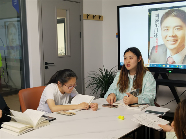 沉浸在阅读中的时间转瞬即逝,在指引下,同学们开始轮流分享对《刘强东自述我的经营模式》的感悟与心得,每个同学从不同角度分享看法,樊欣瑶同学先分享:“这本书不仅深入剖析了刘强东独特的经营理念和策略,更以其坦诚直率的自述方式,让读者得以窥见一个成功企业家的真实心路历程,这是一本极具启发性和实用价值的商业读物”。王怡同学也分享了自己的想法:“刘强东以其诚信和务实的品质赢得了广泛的尊重和信任,他始终坚持诚信经营,注重履行社会责任,为京东树立了良好的企业形象,同时,他也非常注重细节和执行力,确保公司的每一项决策都能够得到有效落实”。