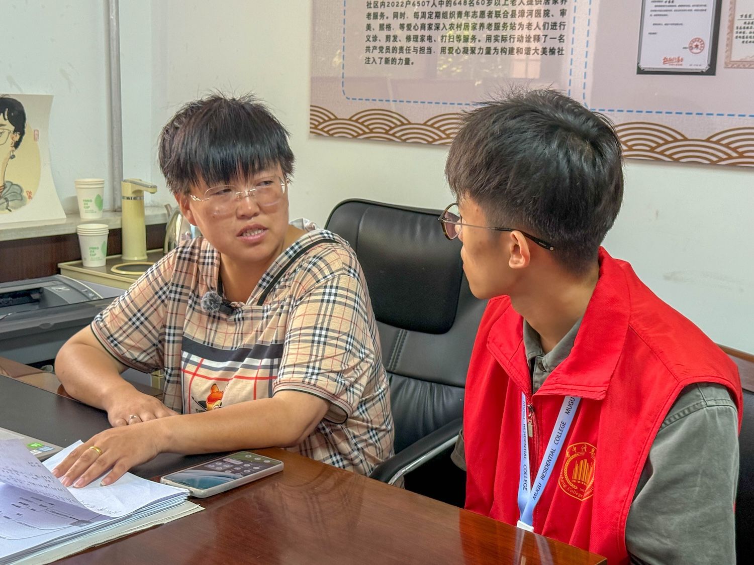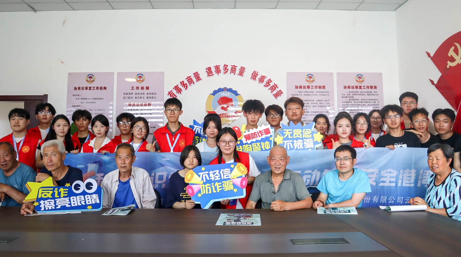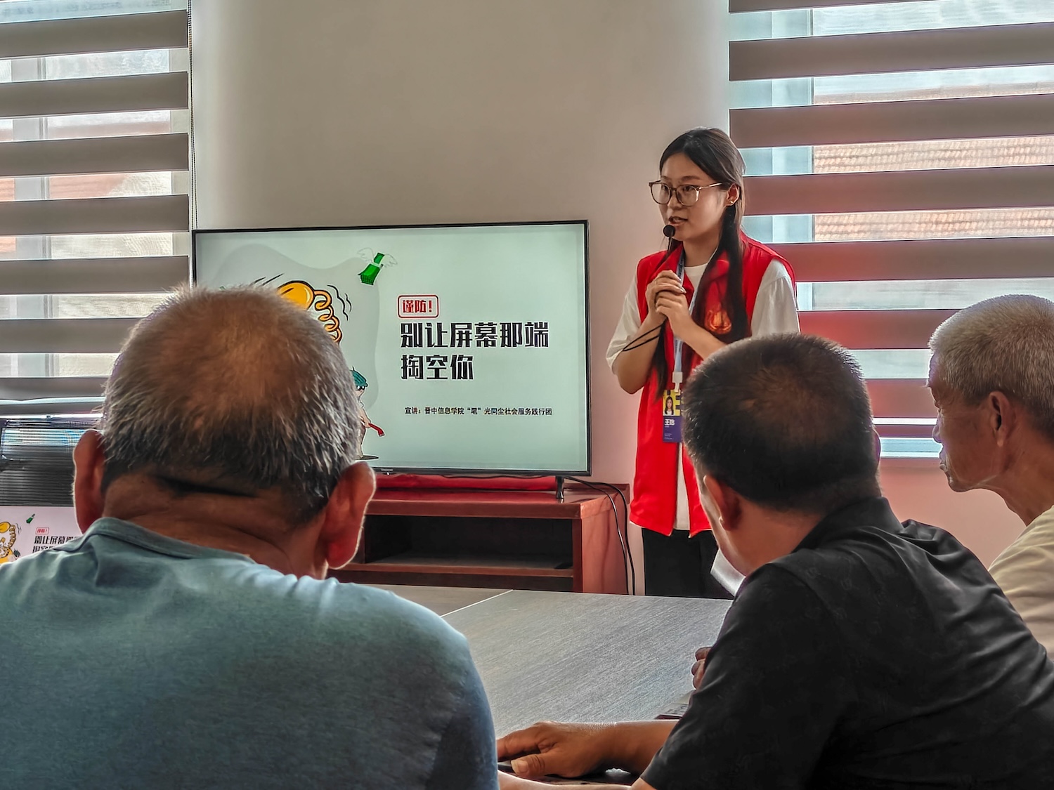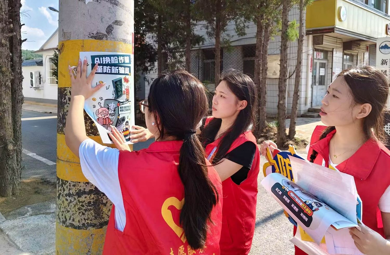 “毣”光同尘社会服务践行团首站奔赴150公里外的榆社县云竹镇及周边多个村落,聚焦防溺水与防电诈两大安全议题,联动山西榆社农村商业银行股份有限公司云竹支行,践行团深入云竹村与村干部、村民代表细致交流。从受骗人群特征到损失金额数据,从溺水自救方法到高发时间节点详细了解近年来村里电信诈骗及溺水的具体情况,将践行团成员用幽默的情景剧把各类套路转化为“村言村语”。晒太阳的老人、放假的中学生商铺的店主……践行团成员把安全知识送到田间地头、湖畔人家,让每个人都get安全小技巧。
