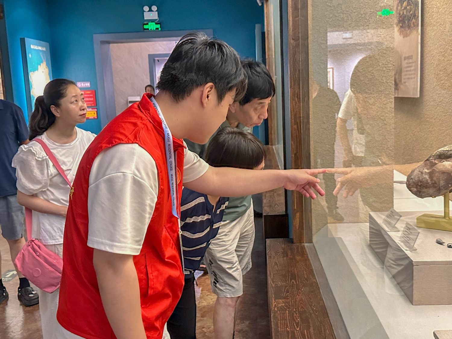 历史是最好的教科书,也是清醒剂。七七这天践行团成员走进韩庄村八路军总部兵工纪念馆及榆社县化石博物馆的“红色记忆”革命文物厅,缴获的日军大衣、泛黄的《党员学习手册》、八路军自制煤油灯等上百余件文物,构建起沉浸式历史长廊。一张标注“刘邓驻潭村爱民公约”的布告,见证“不拿群众一针一线”的铁律,真切感受到“军民鱼水情”的重量。“我志愿加入中国共产党……”成员们举起右拳,重温入党誓词,让“七七事变”88周年的纪念,成为一堂行走的爱国主义教育课,让“铭记历史、珍爱和平”的信念深深扎根。