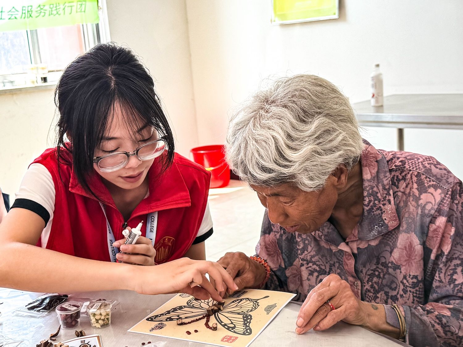 回程路上翻看着相册里的照片和视频,虽然只有短短几天,印象最深的是去养老院做五谷画,我帮老爷爷摆豆子,他笑着说头回见这新鲜玩意,做完还问能不能带走。旁边老奶奶更逗,举着画跟人显摆“我这个最漂亮”,像个老小孩,一下想起自家老人,得花时间多陪陪他们。这趟不光历练了自己,更懂了老人小孩多需要关注,做志愿者心里暖暖的,以后还要多做有意义的事。