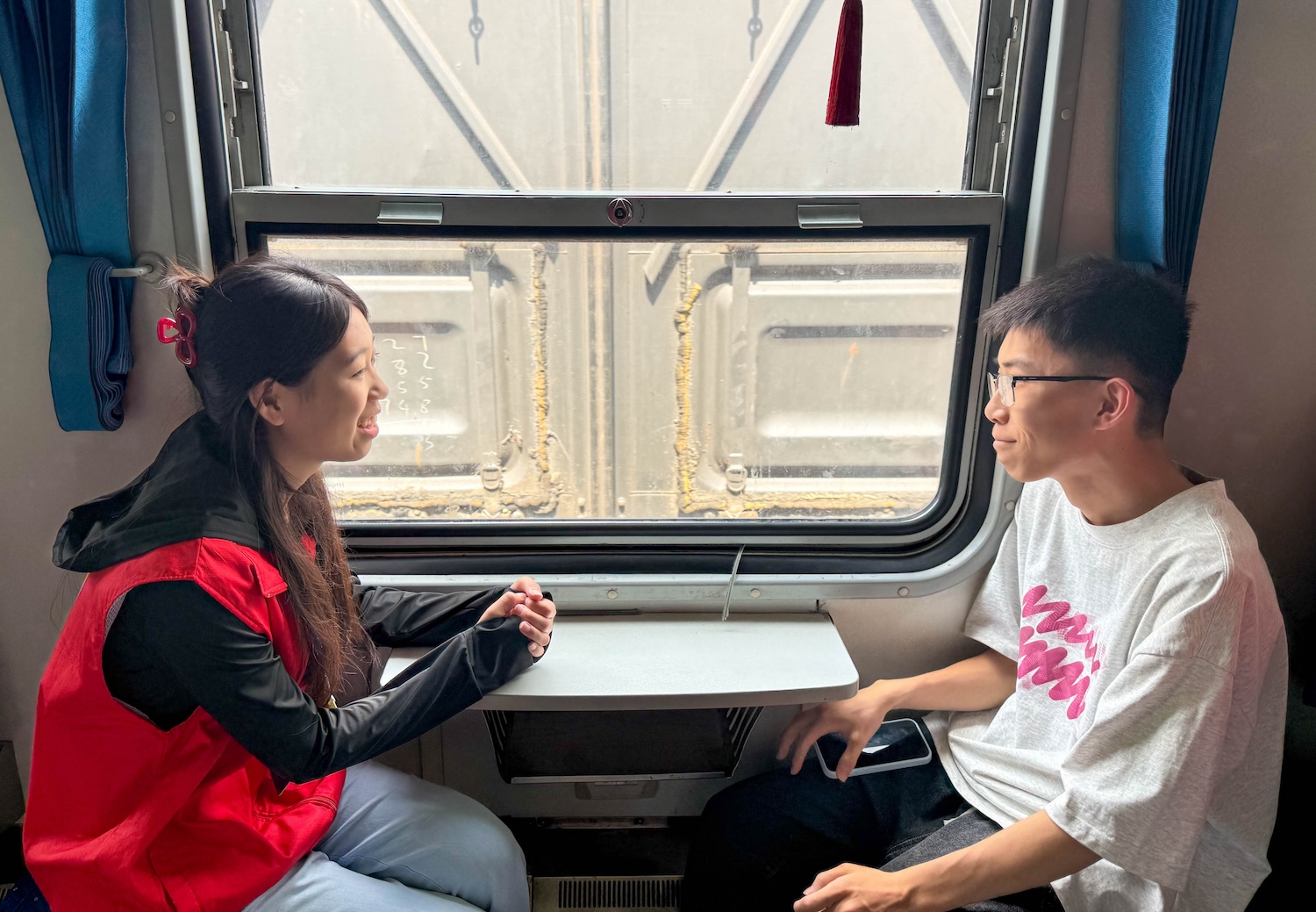 “呜——”8171次小火车缓缓驶入榆社站。践行团的成员们登上列车,开启了一段寻找“幸福”的旅程。这列运行了30年的绿皮火车,是革命老区与外界连接的生命线,也是乡亲们生活里不可或缺的伙伴。座椅被岁月磨得发亮,车窗上的划痕记录着无数次开合。成员们和邻座的大叔聊起来。“我从小坐这趟车去县城上学,现在带孙子去姥姥家,还是坐它。”大叔指着窗外,“这火车慢是慢,但稳当,票价还便宜,咱老百姓就认它。”这列只有3节车厢的小火车,载着的不仅是旅客,还有乡亲们的牵挂、孩子们的期待、老区的烟火气。当列车抵达终点,小火车再次鸣笛出发,忽然懂得:所谓幸福,或许就是这样一趟慢悠悠的火车,把温暖与希望,一站站传递下去。