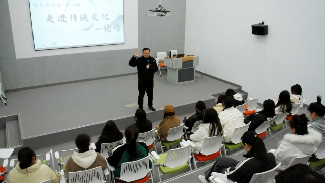 11月28日15:00,杏花书院于6号影厅开展第4期院长面对面:走进传统文化——《论语》活动,名誉院长高昂老师结合古今,浅析《论语》中的思想内核,带领参加者感受先秦儒家学说的智慧。