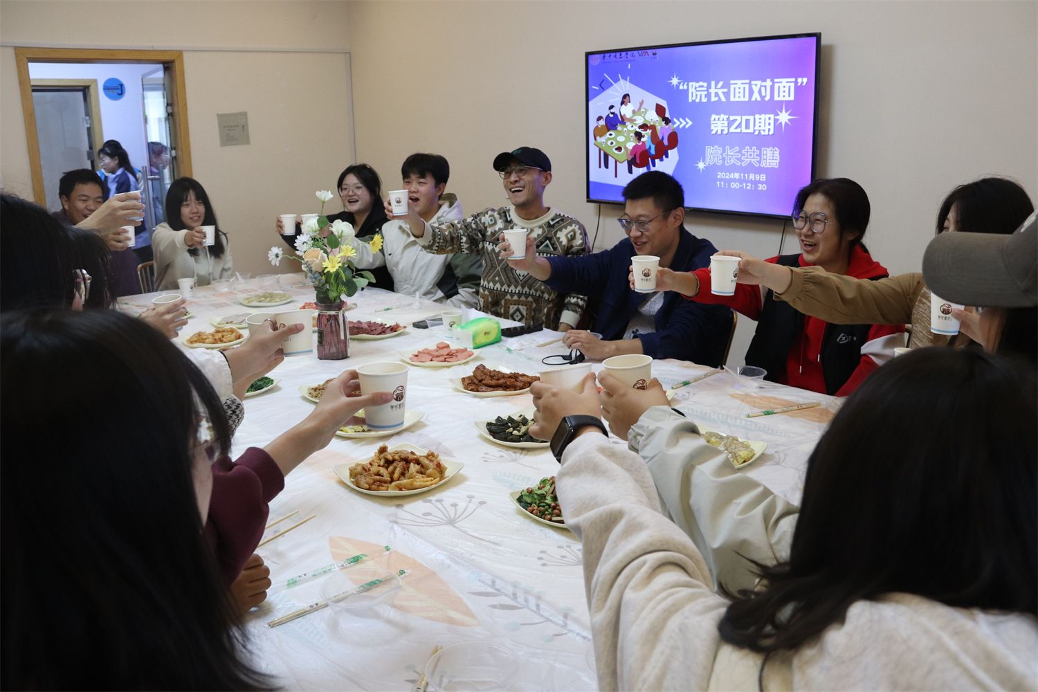在青年辩手们的期待中,11月9日中午,陈凌岳院长与同学们在书院内共进了午餐。亲手制作的美食相伴,师生相谈甚欢。围绕“辩论的艺术性”话题,陈院长特别强调了理论学习的重要性,并阐明了辩论与脱口秀在严谨性上的区别。同学们也纷纷谈到了自己的辩论经历,自信地讲述着在辩论中的收获和思考,陈院长关于辩论经验和技巧的分享使辩手们收获颇多。