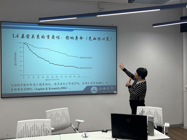 届时,刘丽老师围绕“亲密关系漫谈”展开讲述,老师以现实婚姻为例向同学们抛出问题并以此展开讨论。同学们的回答各异,但每个答案都凝聚着他们对亲密关系的理解和思考。老师耐心地倾听着,并给予肯定和鼓励。这个场景不仅是一场知识的交流,更是一次心灵的碰撞和成长,随后,她深入浅出地剖析亲密关系的构建与维系,强调了沟通、理解和信任的重要性。现场同学们津津有味地听取着老师对于各种关系的解答,不时点头回应。通过老师的讲解,大家对亲密关系有了更深刻的认识,也明白了如何在日常生活中更好地处理与伴侣、父母、朋友之间的关系。