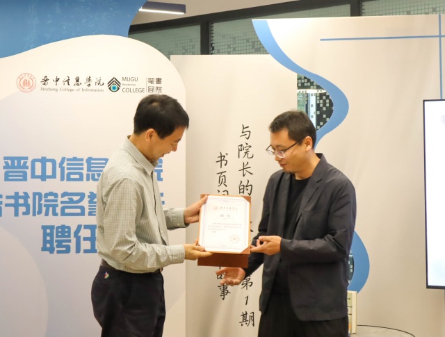 一所高校的进步,离不开理念的革新和资源的汇聚。在书院宣传片《逐光》的温暖呈现下,毣谷书院名誉院长聘任仪式正式拉开帷幕,学校副校长傅永林为魏思孝颁发聘书。魏思孝院长感慨道:“第一次走进书院就被这里蓬勃的生命力打动了,在和学生们的互动中真切的感受到了他们的无限可能”,回顾过去近二十年的文学创作和阅读,让他更加坚定了用文字记录生活、传递情感的责任与使命。他期望与信院师生共同营造一个充满文学氛围的空间,让每个人都能在故事的滋养下成长,让思想在交流中得以升华。