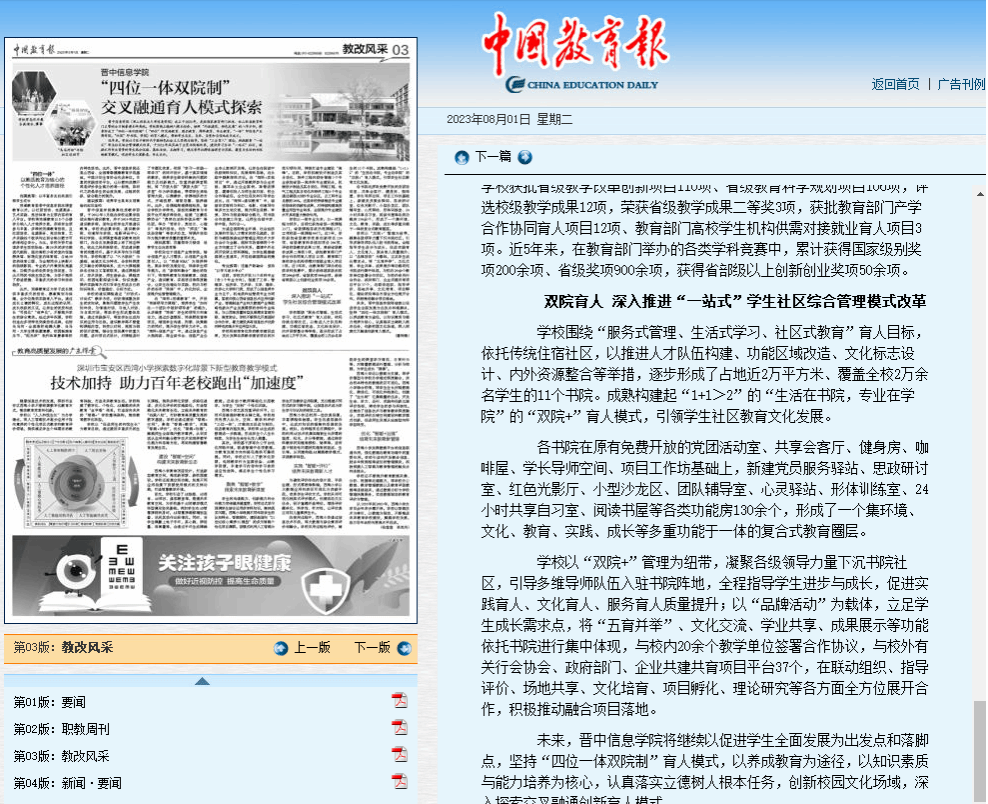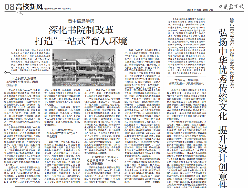 【中国教育报】晋中信息学院:以全员书院制建设“一站式”学生社区