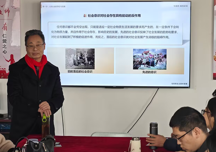 为进一步深化思政课教学改革创新,提升课堂教学质量,马克思主义学院举办了一场围绕《马克思主义基本原理》课程中“社会存在与社会意识的辩证关系”这一核心原理的说课研讨活动。本次活动由何欣怡老师主讲说课,李洁、武柳君老师进行补充发言,并特邀赵民胜教授、乔运鸿教授担任点评专家。