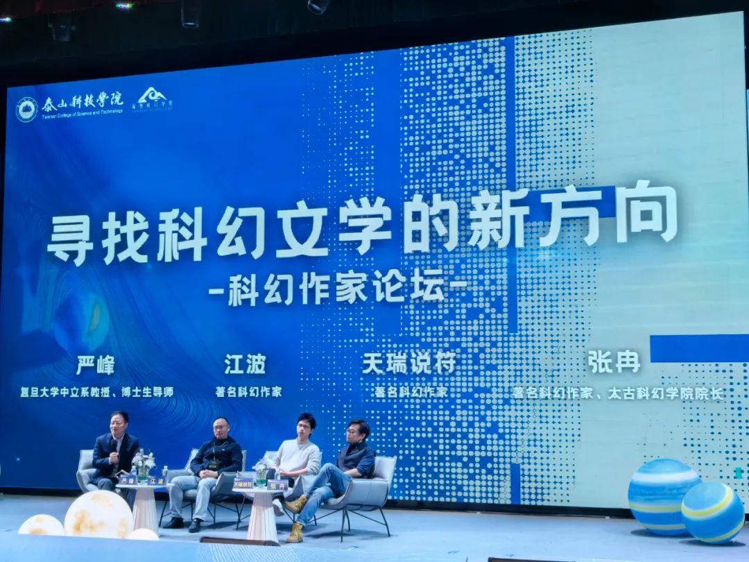 11月9日上午,学院师生参加了在泰山科技学院青未了剧场举办的泰山·中国科幻高峰论坛。论坛内容涵盖科幻教育、科幻产业、科幻作家、世界科幻、科幻名人演讲、泰山科幻社团代表演讲等六个维度。太古科幻学院院长张冉以科幻作家身份,在论坛上与严峰、江波、天瑞说符等嘉宾共同讨论了科幻创作的前沿性与创作技巧。