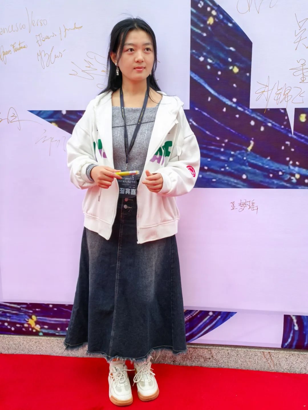 随后的红毯仪式令人心潮澎湃。当听到著名科幻作家张冉带领太古科幻天团出席时,我的内心激动不已。我跟随着院长张冉的步伐踏上红毯。他宛如一位引路人,那一刻,科幻这扇古老而神秘的大门仿佛正徐徐敞开,而最后与百余名科幻大咖的合影留念,更让我深感荣幸之至,这一时刻如同璀璨星辰,将长久镶嵌在我的记忆长河之中。
