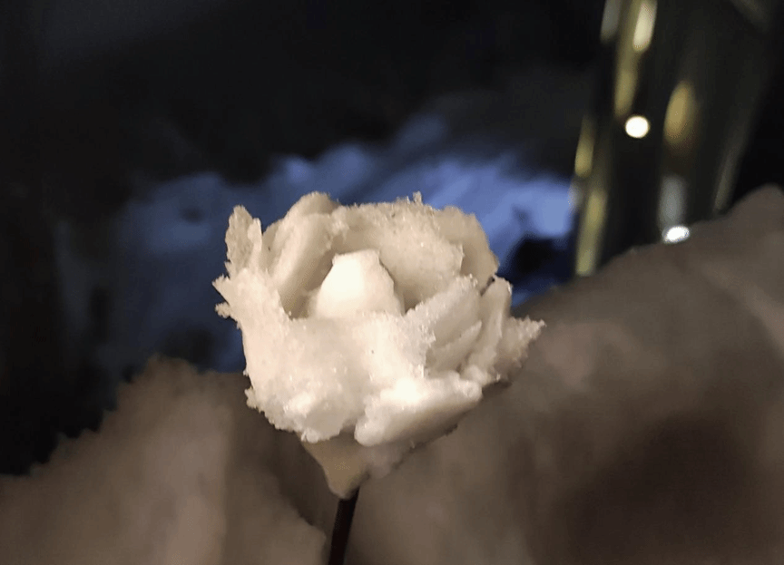 冰雪是冰冷的,玫瑰是炽热的。在自然界中本来是无法联系在一起的,但我们可以运用自己想象力将二者结合,就会拥有在冰天雪地里盛开的玫瑰。
