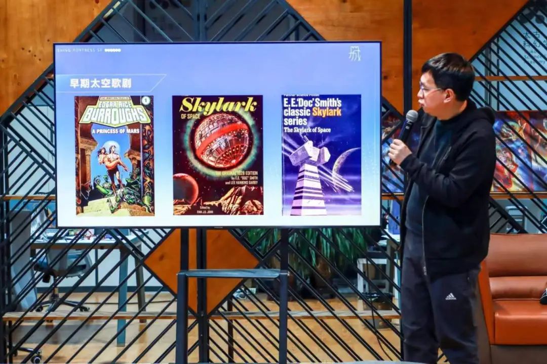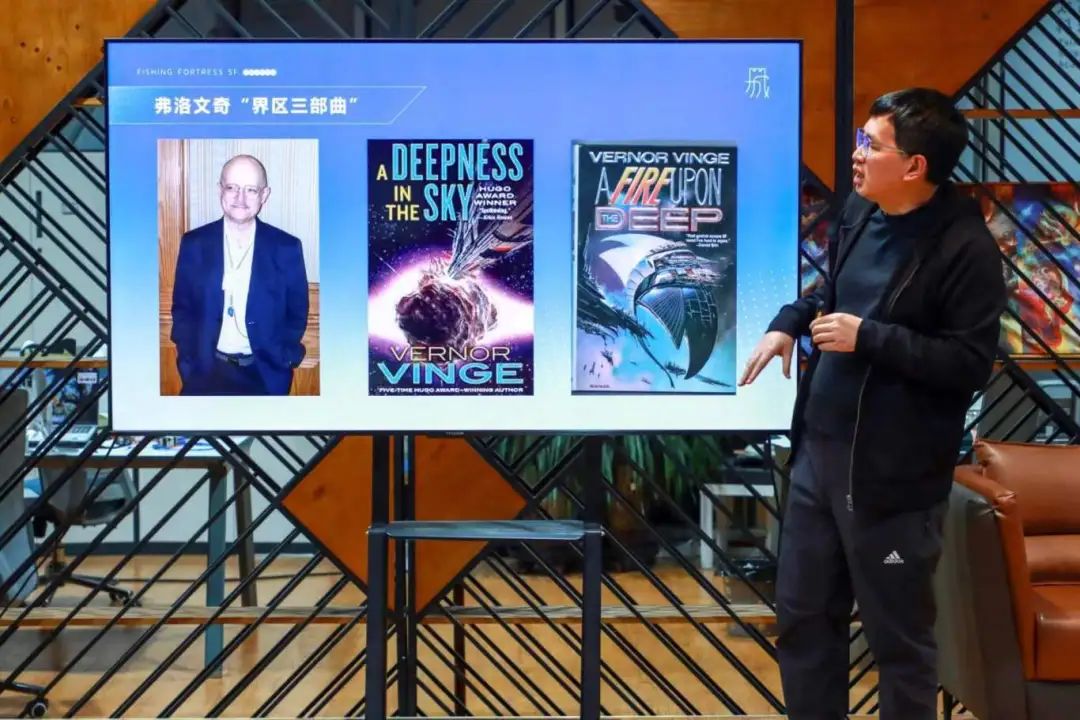 之后,张凡老师又介绍了两位擅长写“太空歌剧”的作家——洛伊斯·比约德和弗洛文奇。洛伊斯·比约德是位相当特别的作家,她在“迈尔斯”系列中把太空歌剧和生物工程、基因工程以及女性主义结合在了一起。弗洛文奇最有名的作品是“界区三部曲”,三部小说分别是《天渊》《深渊上的火》《天空的孩子》。他的小说里贯穿了很多数学概念,还有有很多对宗教文明的思辨。