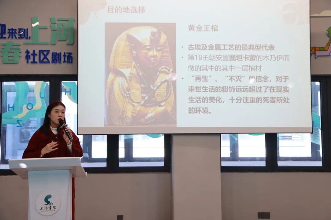 10月23日下午15:00,一场别开生面的讲座在上河书院209拉开帷幕。此次讲座是古风工坊“半盏青绿”的第二场讲座,由太古科幻学院任诗晴老师主讲,主题为《当我们穿越到古埃及,我们的vlog该怎么拍》。这场讲座吸引了众多科幻迷和摄影爱好者的目光,为听众们带来了一场穿越时空的奇妙之旅。