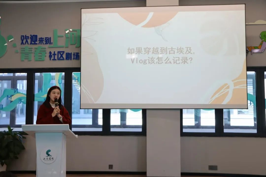 随后,任老师将话题转向了Vlog的拍摄技巧。她强调,幻想在古埃及这样的历史背景下拍摄Vlog,不仅要注重画面的美感和历史的真实性,更要注重创意和故事的讲述。她鼓励同学们要敢于打破常规,参考部分电影的故事节奏,尝试用新颖的视角和独特的叙事方式来呈现时间旅行中的古埃及魅力。