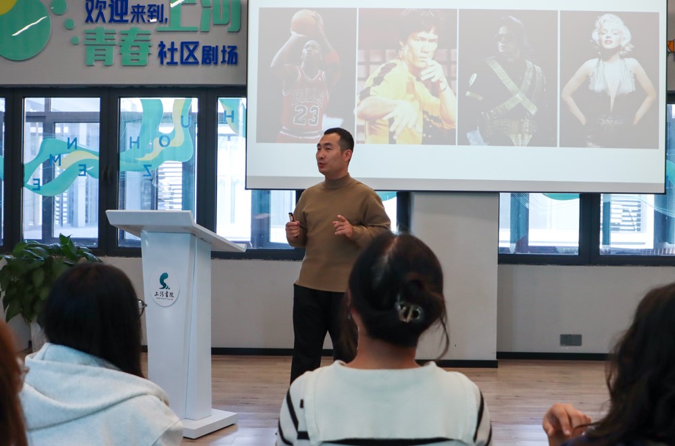 活动伊始,刘玉胜老师以大家耳熟能详的国际巨星为例,用诙谐幽默的语言点燃了现场的气氛。围绕当代年轻人热衷的明星话题,刘老师详细阐述了明星制度,这是一种20世纪在好莱坞兴起,旨在鼓励人们对明星崇拜的商业策略。通过对明星制度起源和早期发展的剖析,刘老师引导同学们思考其积极与消极的一面,以及其 一夜成名背后的人性光辉与无尽的辛勤付出。