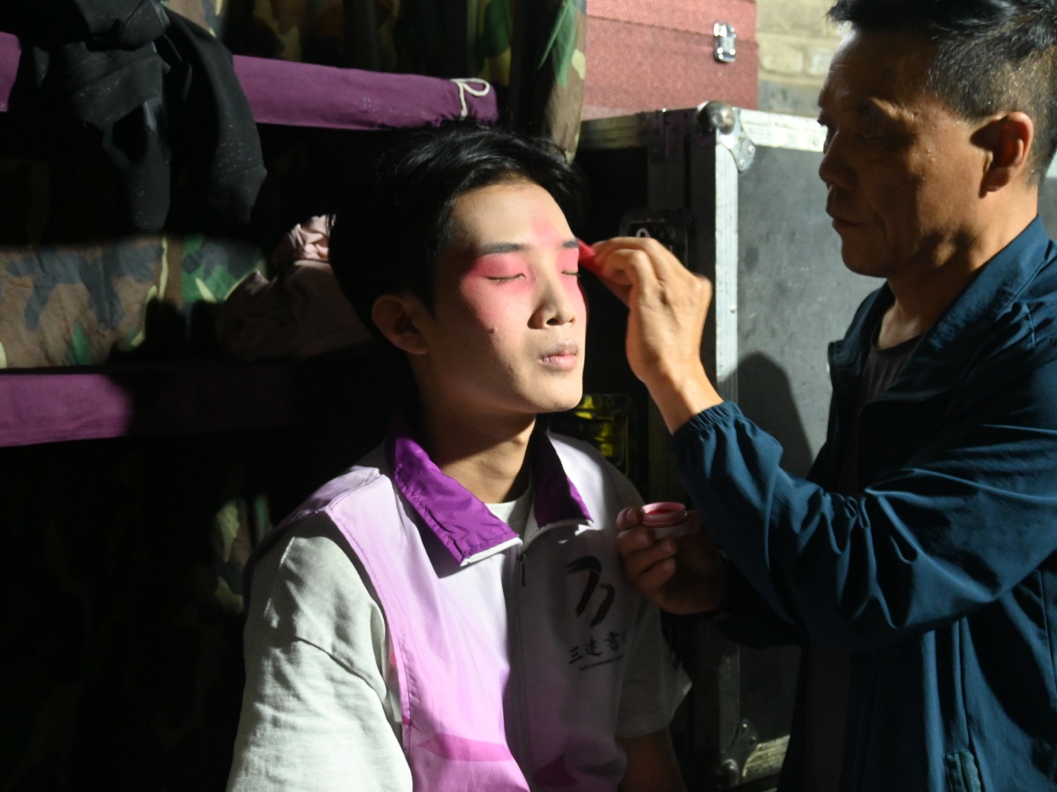 在探访花灯技艺后,“达灵”团队深入灵丘罗罗腔剧团后台,亲身体验勒头勾脸、穿戴戏服头饰等传统妆造环节,零距离感受这项国家级非遗艺术的传承故事与幕后坚守。幕布之后,演员们一丝不苟地排练,道具师傅精心打磨器具,化妆师细致勾勒脸谱——这些鲜为人知的点滴付出,共同构筑起传统戏曲艺术生生不息的坚实根基。
