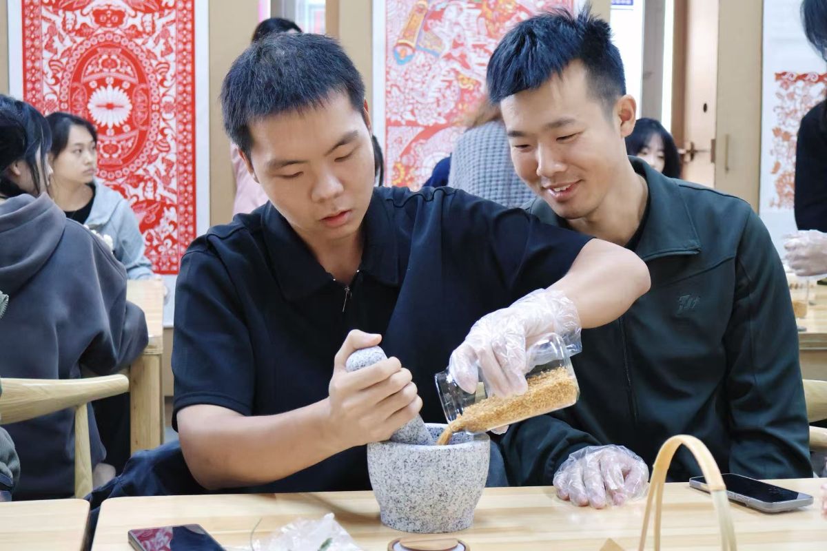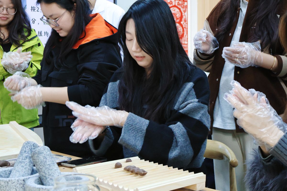 讲起食材功效,更是干货满满,李老师笑着安利道:“山楂就是‘胃的反卷王者’吃撑了嚼两颗,比健胃消食片还顶用,茯苓是‘湿气刺客的卧底’爱长痘的同学可得偷偷多放两勺!”山楂丸的制作不仅是专属信院学子的“健康小零食”,更是将传承千年的非遗手艺和健康专业知识一同“打包”回家。