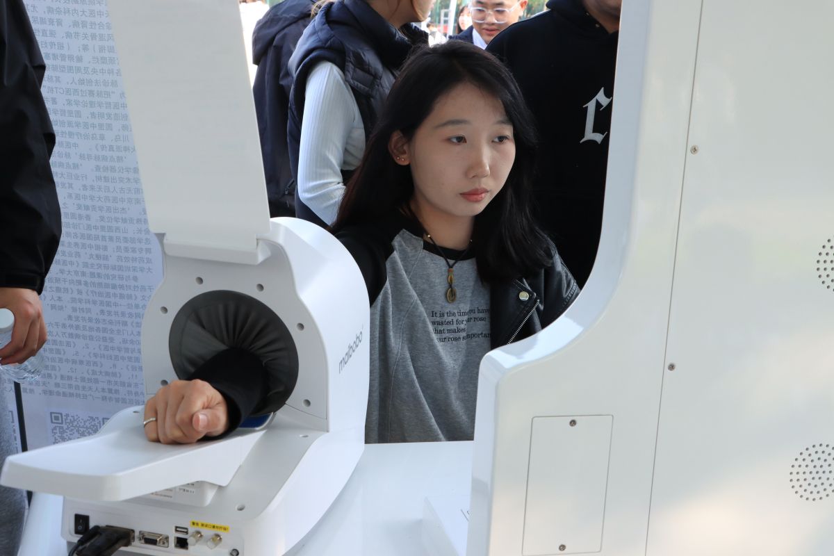 “滴滴——”大健康学院“E加健康体检一体机”及多项实验设备首次参与活动!以健康数据采集为切入点,针对青年健康提供智慧化解决方案,以个人身体基本数据、血脂四项、九型体质、心电图等十二大类别齐上阵,为信院学子提供定制化个人健康检测,神经内科闫峰老师和健康咨询王钢老师,捧着检测报告直接开启“精准健康定位”。