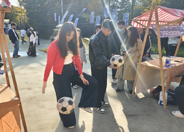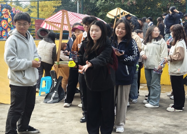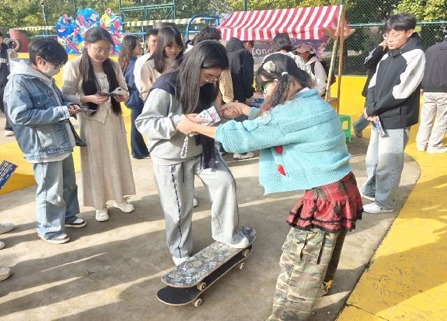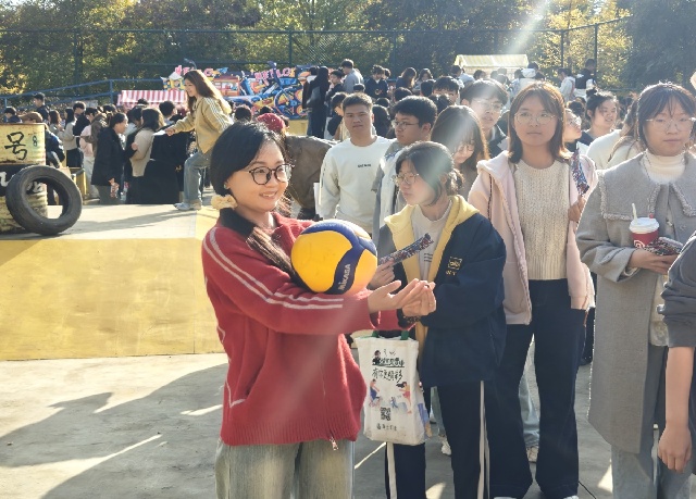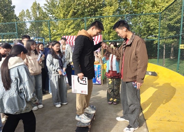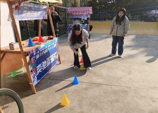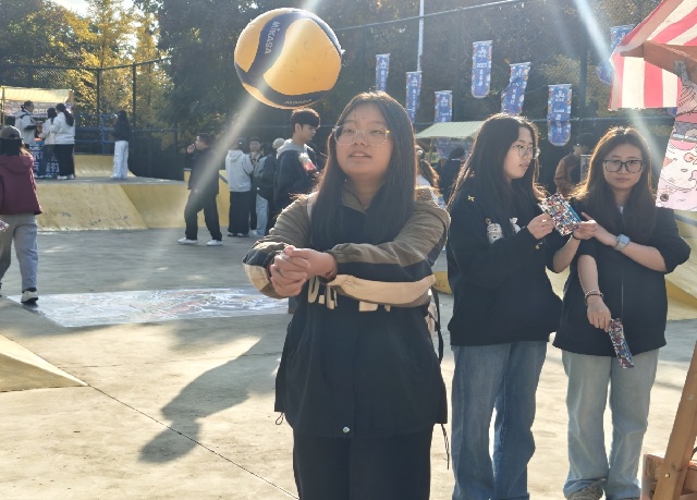 滑板公园的热闹里,10个体育类社团的挑战超吸睛!Zonda滑板社的“新手平衡试炼”前,社团成员全程护航,帮助大家克服初滑的紧张;GOAT排球社的“趣味垫球闯关”创意十足,用轻松的形式传递排球运动的魅力;篮球社的定点投篮、羽毛球社的颠球接力等关卡也各具特色,社团成员们以专业又热情的态度引导参与,每一处都洋溢着青春的蓬勃气息,让“一站式”运动体验变得鲜活而具体。