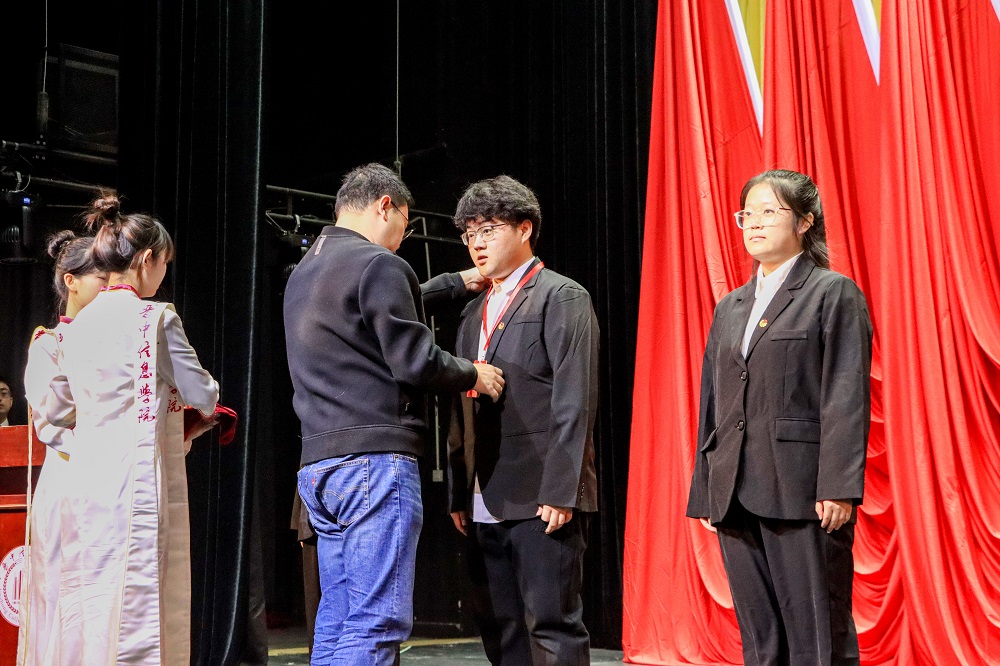 开班仪式在庄严的国歌声中拉开帷幕,学校团委宣传推广中心主任孙希梁向学员们介绍了第十七期“青马工程”学生骨干培养计划指导思想、价值引领、培养目标、培养模式、主线任务、课程体系等相关情况。学校团委书记郭进为第十七期“青马工程”学生骨干培养计划学员代表佩戴学员证。