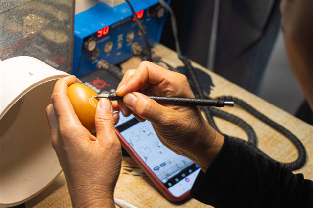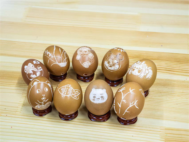 “从前总觉得蛋雕不过是在蛋壳上刻刻画画,真拿起刻刀才知道,这薄脆的蛋壳里藏着多大的学问——稍一用力就会裂,力道轻了又刻不出痕迹,每一刀都得屏住呼吸找平衡。当试着把见过的传统纹样刻上去时,指尖划过蛋壳的纹路,忽然懂了为什么老手艺能传那么久:那些细密的刻痕里,藏着的不只是技巧,更是把时光一点点刻进骨血里的耐心。原来亲手触碰过,才能真正摸到文化的温度。”