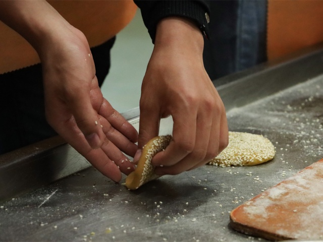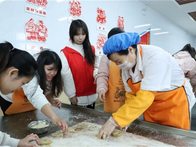 沿着“心意‘饼’承”的主题脉络,留学生们在面香弥漫的工坊里开启了最动人的实践篇章。指尖触碰面团,如同触碰晋商百年前的温度,这不仅是食物制作,更是与时光对话的“沉浸式体验”。定型时彼此会心一笑的创意碰撞,面团在掌心传递,文化在指尖交融,整个空间弥漫着跨越山海皆能共鸣的焦甜香气。