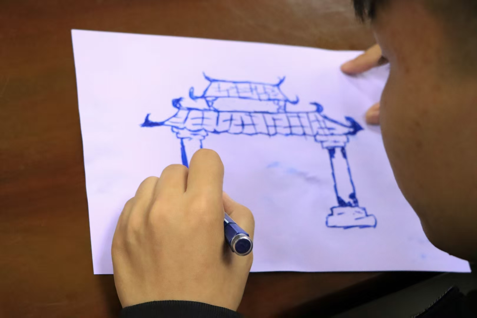 笔尖与纸面的细腻交谈,大家小心地提取城市散落的“记忆切片”,不论是斗拱的层叠韵律,还是极致凝练的线条艺术,那些被岁月包浆的细节在色彩中复苏。当不同的文化背景交融,当古老的建筑被重新色谱解析,每一根稚拙的线条都成为文明的触角,在留白处相遇,在交错中共振。