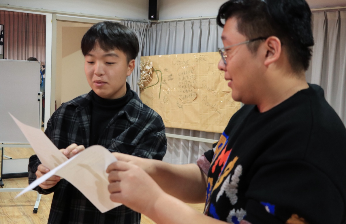 “有没有同学想试试自己说一段?”社长话音刚落,几位同学便主动举手。在“相声配音”区,大家手持台词本模仿经典角色,有人压低嗓音学老艺术家腔调,因夸张而自笑;有人用普通话演绎方言段子,意外产生“塑料方言”的喜剧效果。社团成员不纠正“不标准”,只耐心指导换气技巧——在这里,快乐比专业更重要。环节高潮出现在方言演绎《五官争功》:山西、四川、东北的同学两两搭档,用家乡话将“五官吵架”演绎得妙趣横生。原本担心“方言不好听”的同学,在搭档的带动下也放开了嗓子,坦言:“原来用家乡话讲相声,比普通话还带劲!”现场没有“方言羞耻”,只有毫无保留的欢笑与共鸣。