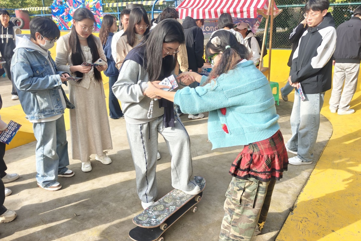 10月22日,社团巡礼节“动能链”热血街区三大子活动同步开展。速风铁三社“跃动趣玩营”设零门槛互动项目,12名“全能闯关达人”收获快乐与礼品;电子竞技社“蛋仔校级联赛”集结256名选手竞技,1500余人线上助威,“鱼香肉丝队”夺冠;Zonda滑板社联动山西农大滑板社交流学习,还鼓励高中生体验滑板,让无畏热爱跨越校际与年龄,成为校园文化传递的温暖纽带。
