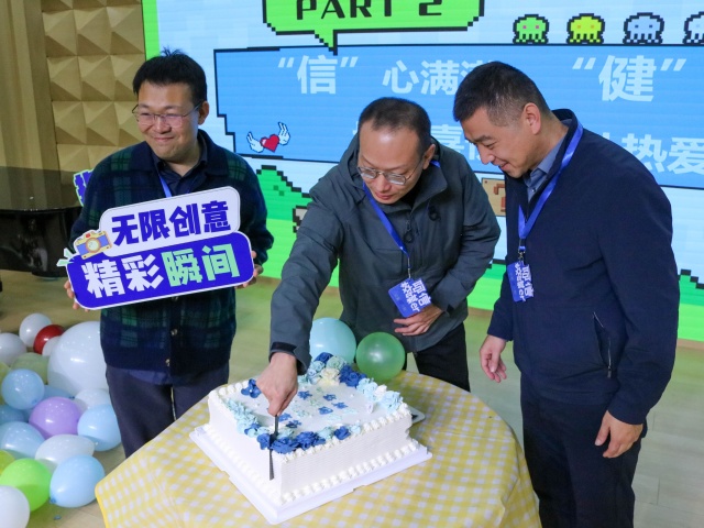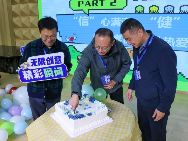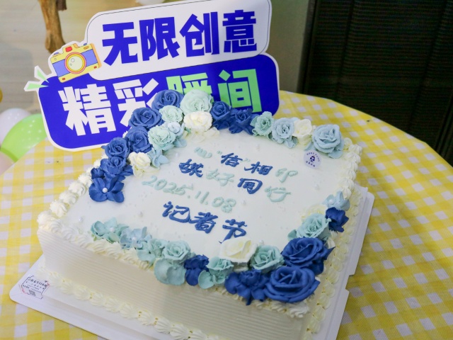 当定制蛋糕带着暖光缓缓走来,现场的温馨氛围被推至顶点。王龙院长、张海明院长与郭杰副院长并肩而立,一同切开这份满含心意的甜蜜礼物。软糯的甜香里,藏着校媒人并肩同行的团结力量,裹着一路走来收获满满的欣喜,更藏着一份无声的约定:未来的日子,依旧用镜头捕捉美好,用文字传递温度,让校园里的每一份感动都被看见、被铭记。