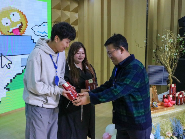 派对现场灯光柔和,暖意渐浓。信息工程学院院长王龙登台寄语,“宣传工作者是幕后的耕耘者,默默付出却不常被看见。今天,请大家暂时放下忙碌,尽情享受这个属于你们的节日。”