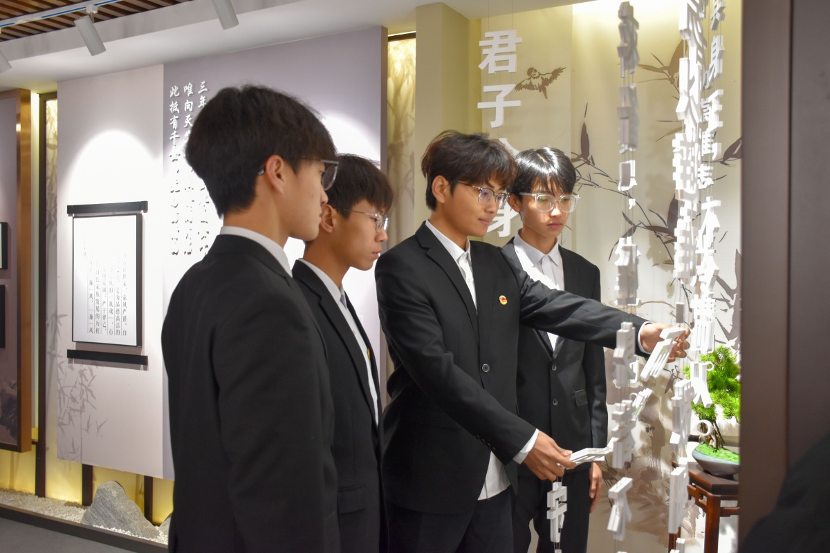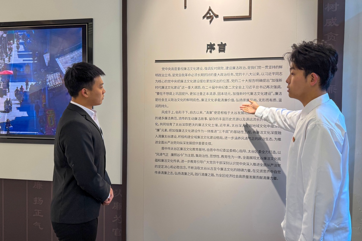 溯源·千年谷韵清风徐来展厅通过展示太谷优秀杰出人物的事迹,让同学们感悟“清廉是福”的深刻道理;寻迹·人文尚廉传续古今展厅将非遗与廉洁主题相融合,剪纸、形意拳体验等生动呈现了“以信立业、以廉兴商”的商业智慧;传承·以廉促行固本培元展厅通过师德典范的实践,展现“清源固本、德廉并举”的育人理念;赓续·久久为功化风成俗展厅则通过家规家训与先贤事迹,呈现廉洁价值观从家庭走向社会的传承路径。