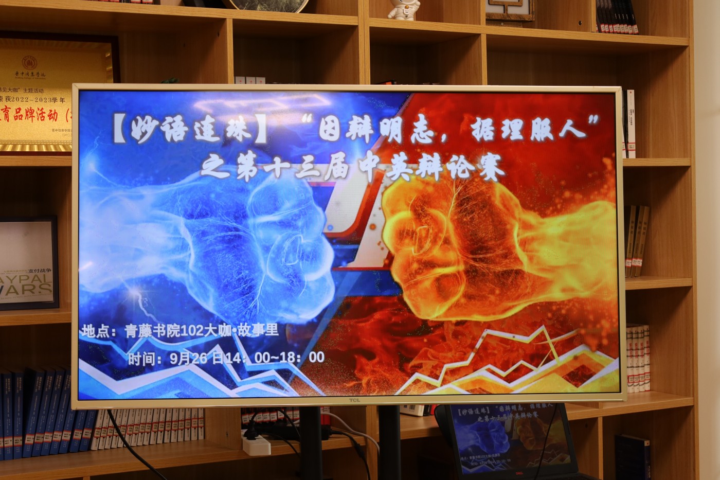 9月27日中午,商务英语学院于青藤书院102大咖·故事里开展了“因辩明志,据理服人”之第十三届中英辩论赛。