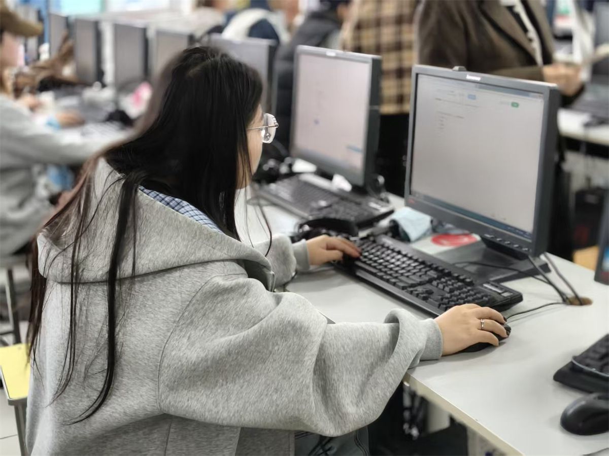 口笔译赛场是语言的“精准实验室”,更是双语沟通的“桥梁搭建现场”。笔译赛道上,选手们化身“文字雕琢师”,从“选词填空”“完形填空”“英译汉”“汉译英”四个部分,考察学生的词汇、语法运用能力、辨析能力及英汉互译能力,在汉英互译间反复推敲,既保证译文贴合原文内核,又力求表达自然流畅,标点、措辞皆细致推敲。
