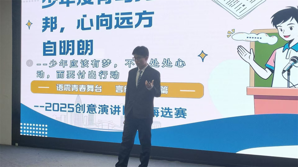 聚光灯骤然亮起,将舞台中央的少年勾勒得格外耀眼。他身着简洁衣衫,身体微微前倾,右手紧握话筒的指尖泛着白,左手则随着话语的起落有力挥动,时而指向远方,时而收于胸前,每一个动作都裹挟对“理想社会”的滚烫热忱。额前碎发被气流扬起,他目光如炬般直视台下,从“科技如何守护人文温度”到“少年应如何践行社会责任”,每一句宣言都像掷向空气的鼓点,震得台下观众悄然的坐直了身体,前排人悄悄攥紧拳头,指腹因情绪激荡而泛红,而后排人则频频点头,眼神里满是认同与共鸣。