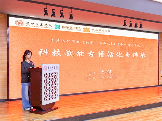 11月5日下午,晋中信息学院名师课堂办公室和云梯非遗传习社在晋中信息学院一餐三楼多功能报告厅举办龙伟《科技赋能古籍活化与传承》。活动特邀国家图书馆《文献》编辑部负责人龙伟主讲,以古籍数字化智慧传承经验为鉴,为苏式琉璃淬炼技艺传承破局,助力非遗“活”在当下。