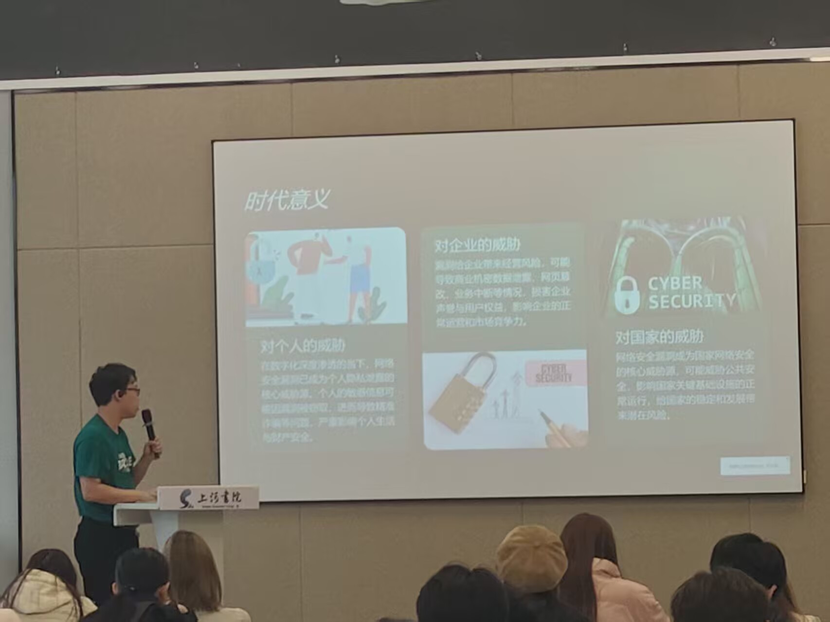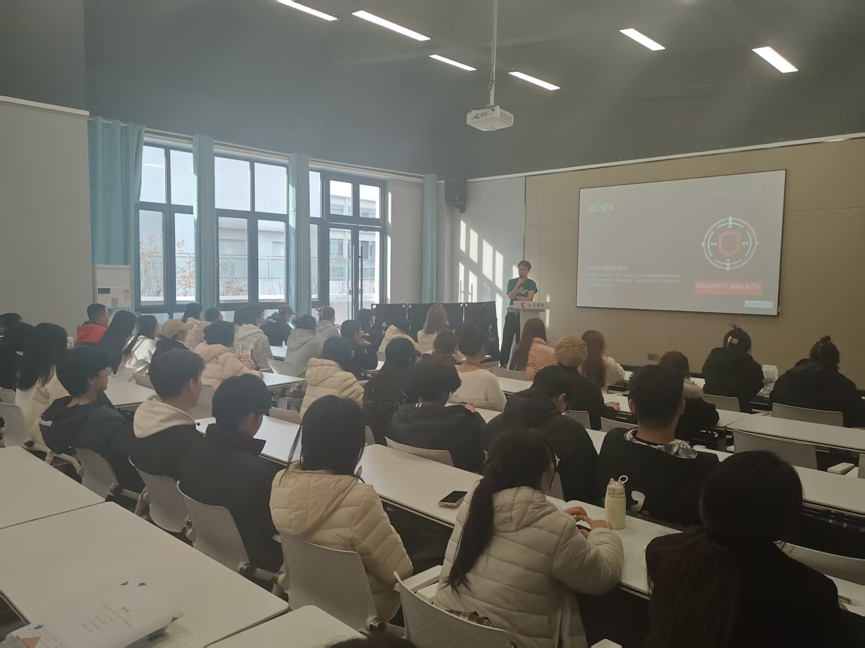 活动现场座无虚席,学生们带着对网络安全知识的渴求,全程投入这场别开生面的科普活动。网络与信息协会社长以专业而亲切的讲解方式,将抽象的网络安全概念转化为学生易懂的生活语言,让复杂的专业技术知识变得触手可及。