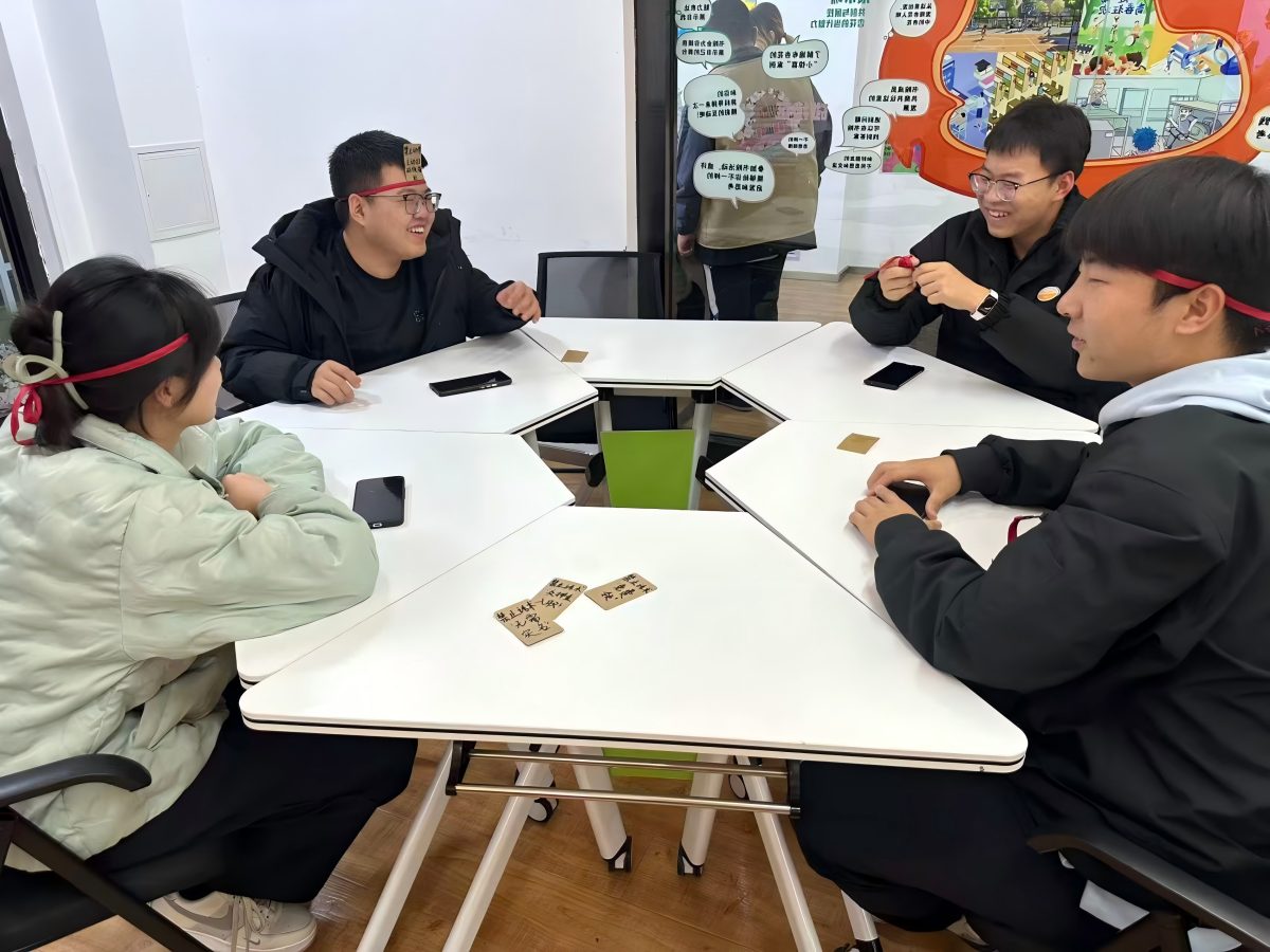 报名成功的“校园侠客”们准时集结Luckyroom,侠客们各立门派,每组5-8人迅速推选组长,开启“侠客修炼”之旅。各组组长抽取的基础卡牌暗藏玄机,“禁止说‘免费领’‘百分百中奖’”“禁止做主动扫码领福利动作”等权益陷阱相关规则,让大家在游戏之初便绷紧防范之弦。随后,每组领取5张“正规权益卡”,涵盖会员积分兑换、退费维权流程等实用知识,成为后续比拼的“硬核装备”。