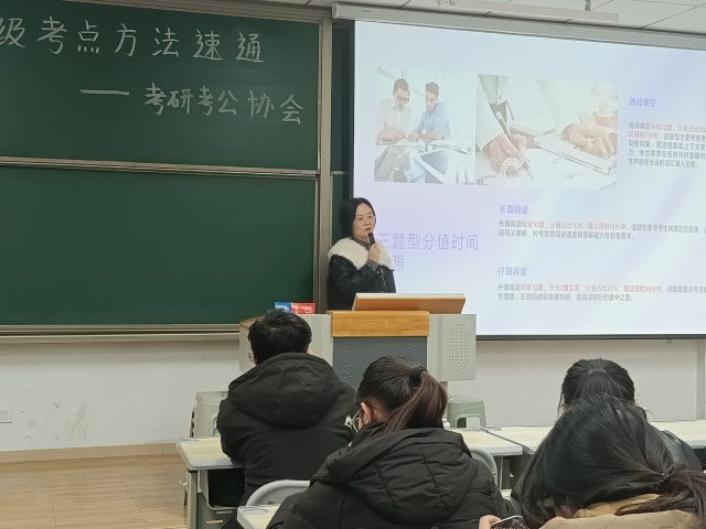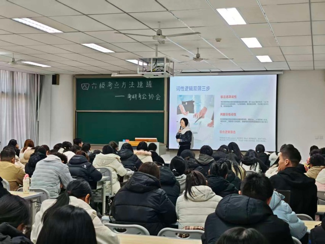 11月19日下午,由考研与公考协会组织的“研”分充电站・四六级考点方法速记活动在晋中信息学院七教104教室举行。本次活动是面向全校备考四六级学生推出的专项辅导活动,旨在通过系统化的考点梳理和方法指导,提升学生的备考效率与应试能力。