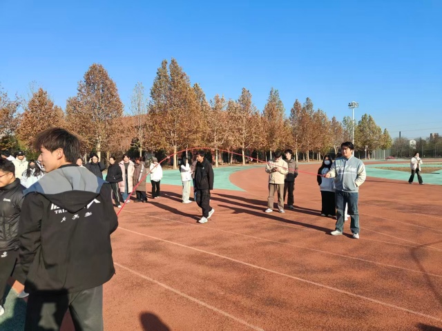 夕阳渐沉,同学们在操场合影,笑容中洋溢着运动的畅快与集体的温暖。长绳起落之间,跃动的是青春的身影,串联的是协作的信念;这一刻所记录的不仅是活动的完成,更是年轻一代在集体中学会支持、在努力中体验成长的生动写照。本次活动在缓解学业压力的同时,进一步增强了同学们的归属感与协作意识,为校园生活增添了一段富有教育意义与情感温度的珍贵记忆。