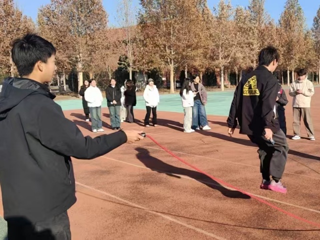 活动中处处可见真诚的互助与坚持。摇绳手长时间保持同一动作,手臂疲惫仍尽力维持稳定节奏;有同学跳跃中失去平衡,周围同学迅速上前扶持,全队静待其重新准备;亦有人主动替换劳累的同伴,以实际行动延续团队动力。一根长绳,联系起彼此的支持与信任,展现出“共同进退、共担成败”的集体意识,也让每位参与者感受到被包容、被重视的温暖。