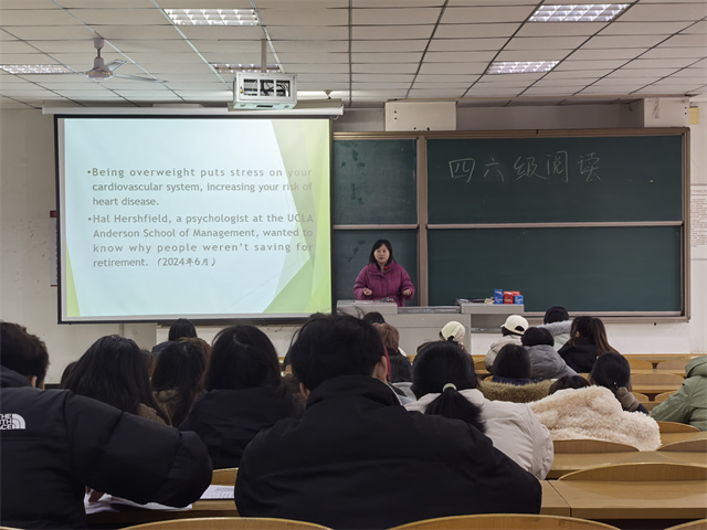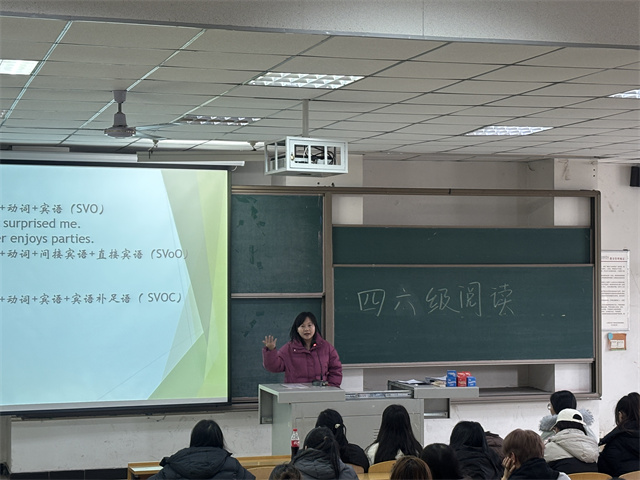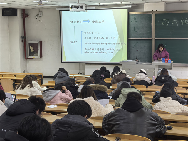 在四六级专题分享过程中,同学们全神贯注地投入到阅读题的学习中。葛老师深入剖析阅读题型的特点与解题技巧,大家紧跟老师的讲解节奏,沉浸于知识的汲取之中。当老师讲解如何快速定位关键信息时,同学们的眼中闪烁着求知的光芒。在互动环节中,大家积极提问,围绕长难句理解、时间把控等问题与老师展开了热烈的讨论。葛老师耐心地一一解答,并现场指导阅读练习,让同学们在实践中掌握了技巧,不仅提升了应试能力,更深化了对英语阅读本质的理解——阅读不仅是信息的获取,更是逻辑思维与语言素养的综合体现。这场分享,不仅传授了方法,更点燃了信心,让备考之路走得更加坚定而从容。