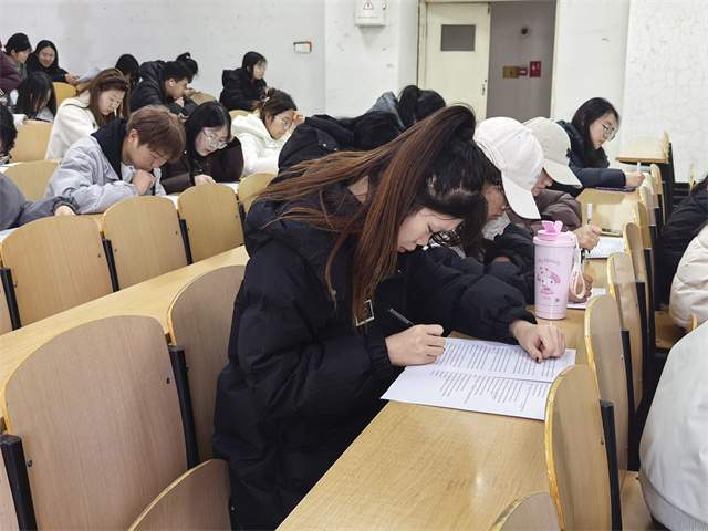 为了加深同学们对阅读技巧的理解与内化,葛老师特别设计了富有针对性的互动实践环节。在这一环节中,同学们以“读练结合”的方式,现场完成了一套精心挑选的四六级阅读模拟练习。题目紧扣讲座中讲解的关键词定位、转折词识别、段落主旨把握等核心技巧,力求实现“学以致用”。练习过程中,葛老师穿梭于同学之间,及时给予个性化指导。对于大家普遍存在的困惑,如长难句理解障碍、信息定位偏差、时间分配不合理等问题,她逐一剖析,用通俗易懂的方式还原解题逻辑,帮助同学们拨开迷雾、理清思路。这一环节的意义,不仅在于技巧的巩固与错误的纠正,更在于唤醒了同学们的“元认知”——即对自身学习过程的觉察与调控。它让备考不再盲目刷题,而是走向科学、高效、有策略的精准备考。