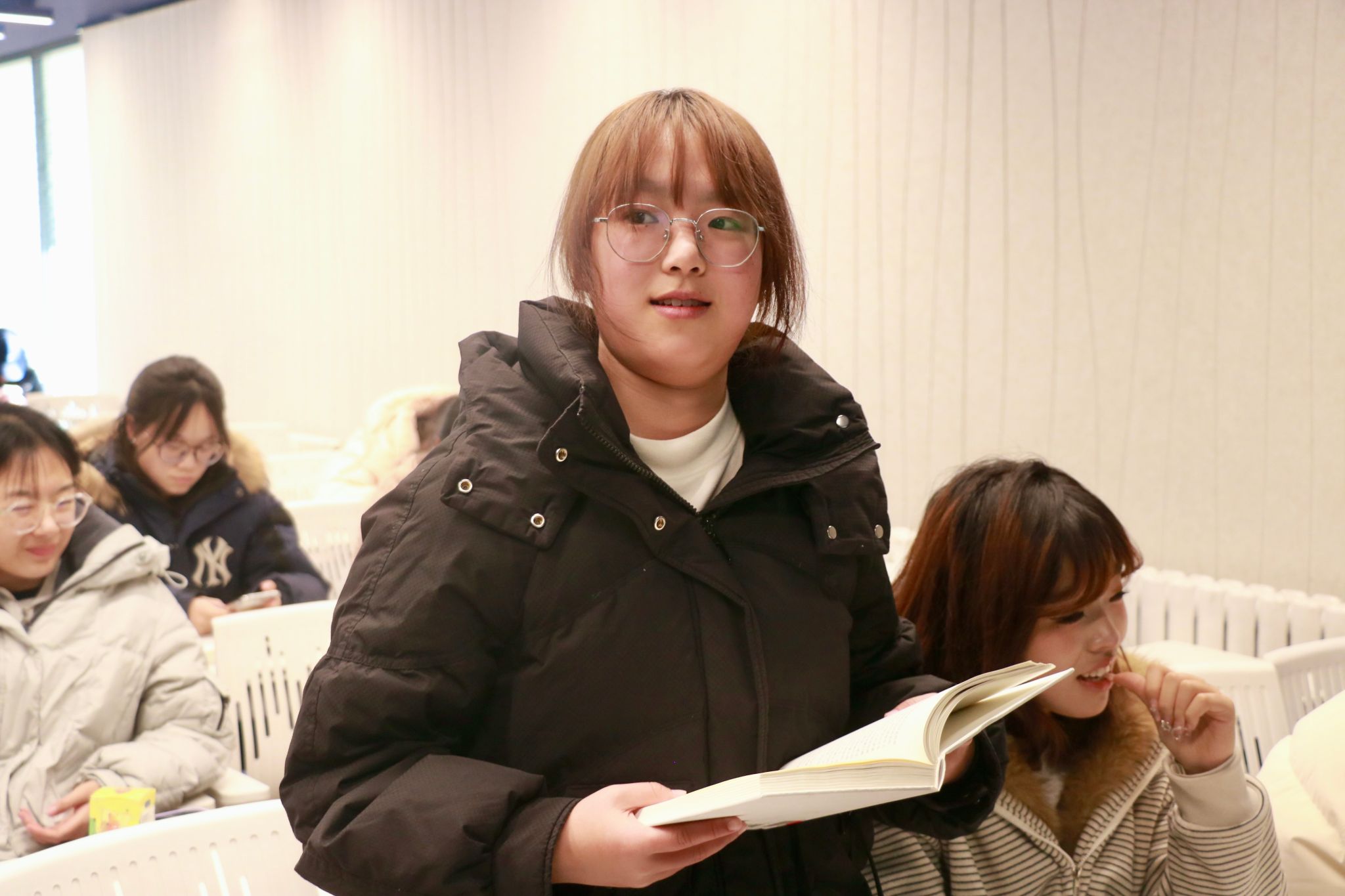 进入深度阅读与分享环节,同学们静心阅读精选章节,围绕“若身处书中的困境,你将如何选择”展开思考与讨论。多位同学主动上台,分享了自己的见解与感悟,从“逆向思维破局”到“长期主义坚守”,年轻的思想在经典文本的土壤上,绽放出独特的个性光芒。