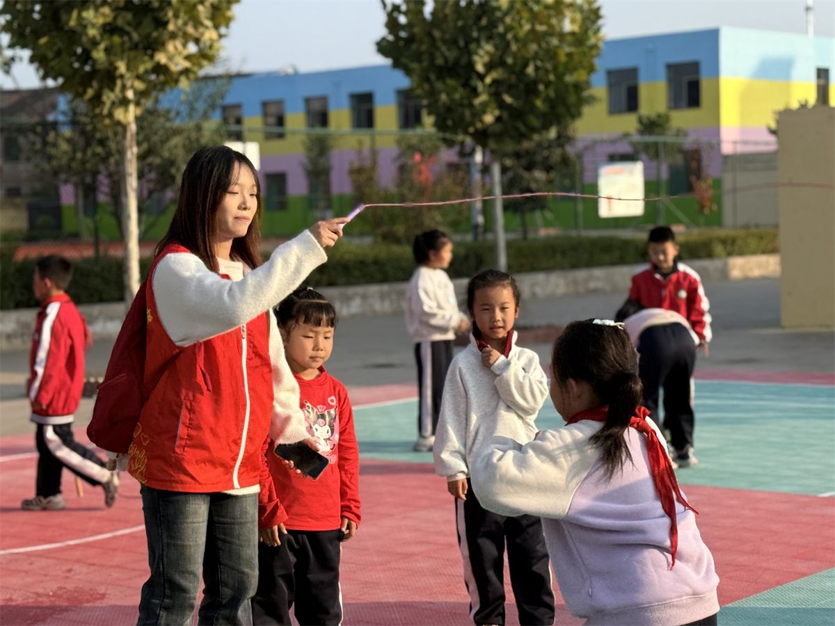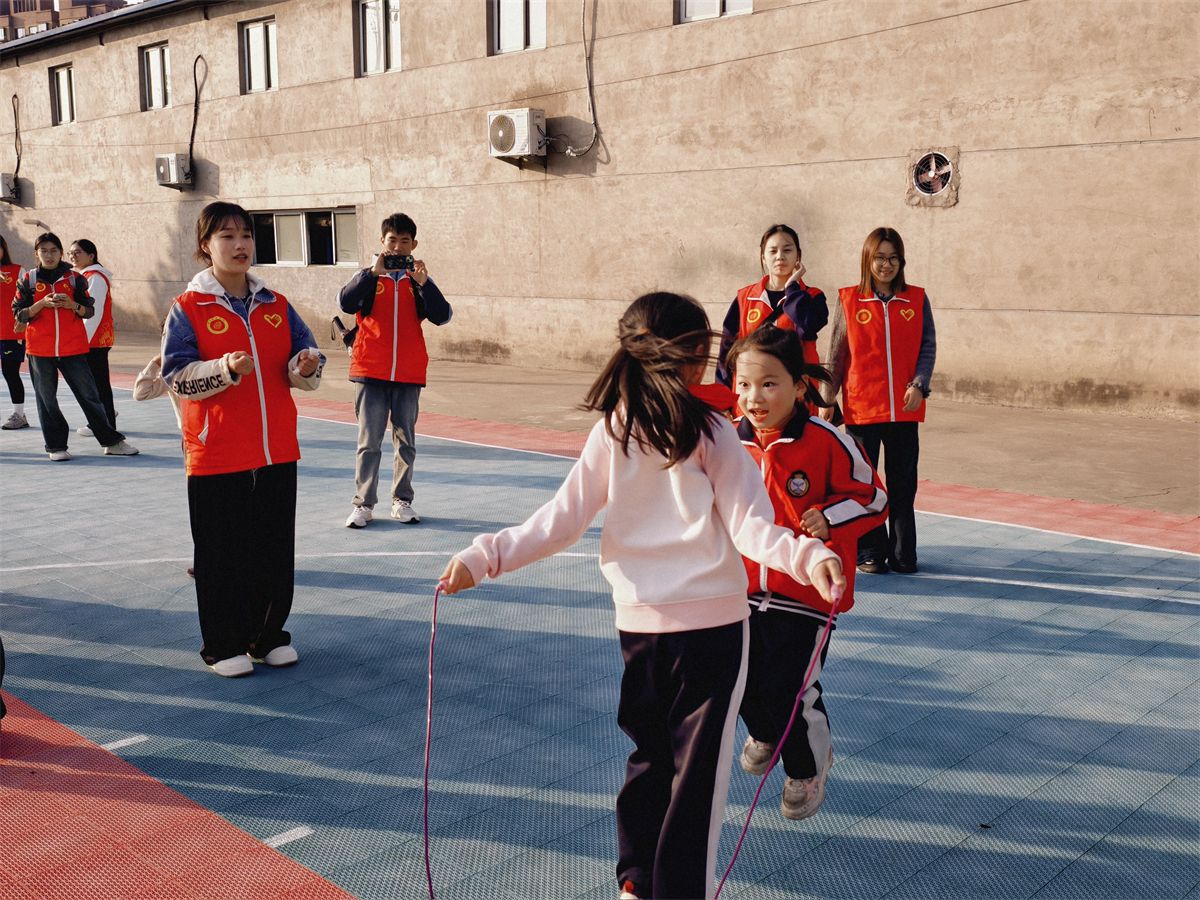 活动在孩子们的欢笑声中开启,志愿者先带大家热身,再有序组织跳绳,孩子们从生涩到熟练,加油声、欢笑声不断,既练协调力又展活力。