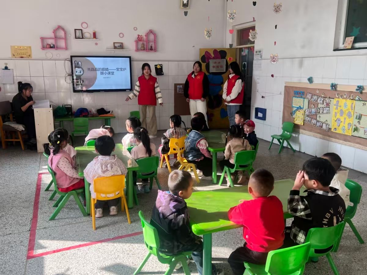 为守护幼儿明亮双眼,帮助小朋友们培养良好护眼习惯,10月16日,为EYE行动专项志愿服务队以“瞳住好时光,眼护新视界”为主题,与朝阳村幼儿园小朋友们开展了一场趣味十足的爱眼护眼活动。活动通过知识讲解、手指操等环节,将枯燥的护眼知识转化为生动有趣的体验,让小朋友们在欢乐中学习、在实践中成长。